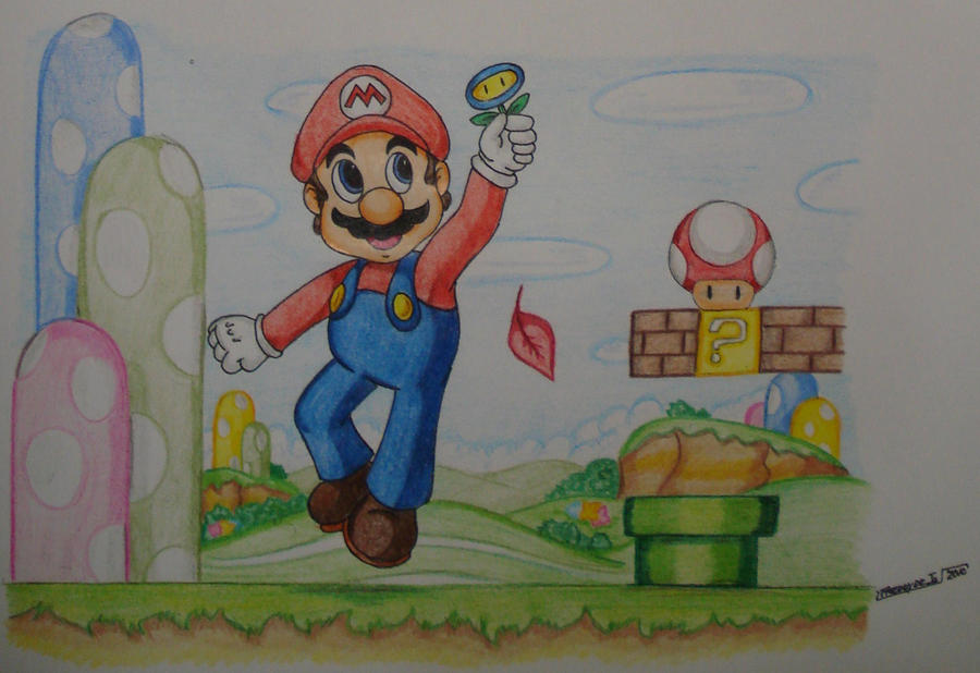 El rey de los videojuegos, como no hacerle un dibujo; y a pesar de que lo hice a petición de una amiga; con este me inspiré en el juego New Super Mario Bros. Wii, como se puede ver en el fondo que tanta inspiración y ganas le di.