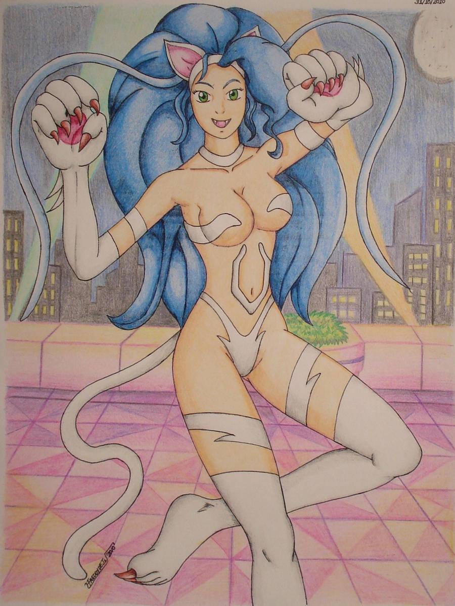 Mi personaje favorito de la saga DarkStalkers y de Capcom en general, este dibujo de Felicia es a este que le puse muchas ganas e inspiración y es el que más cariño le tengo, así como también a los demás de DarkStalkers que hice; el fondo nomas miren el colorido, las luces y la pose del personaje. Lo tengo bien guardado como si se tratara de mi mejor tesoro.