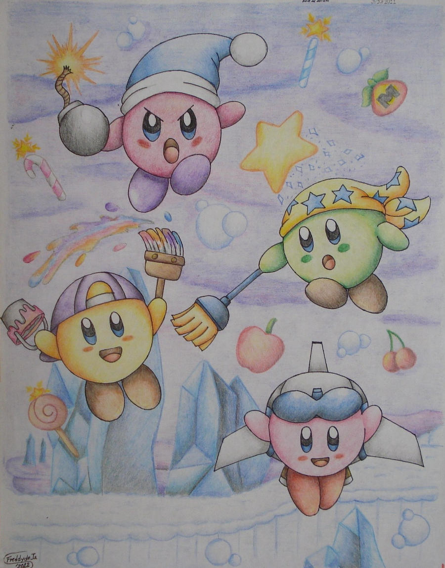 De este hice 3 versiones, pero esta me gustó más. Colocándole los detalles, variando los colores a cada uno y un fondo muy nevado de uno de mis escenarios favoritos del juego, con ese coloreado lo hace ver esplendido.